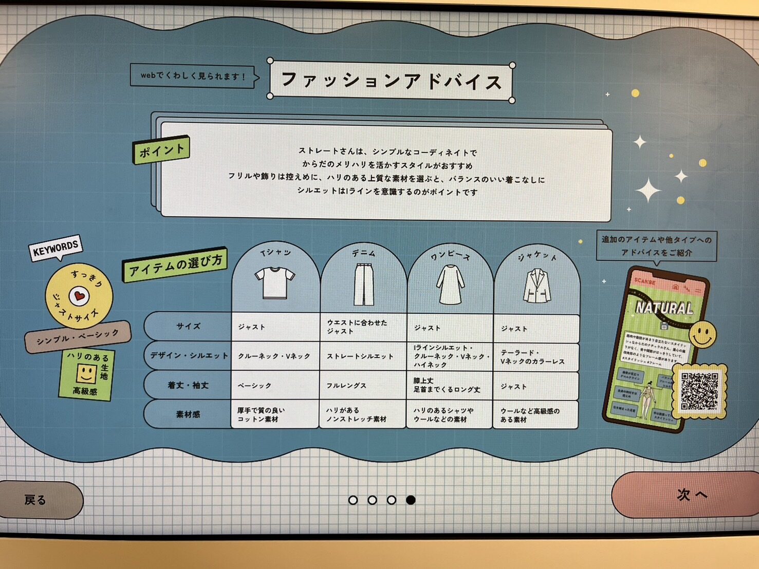 これは機械でボディスキャンをして、体のサイズや骨格タイプを教えてくれる