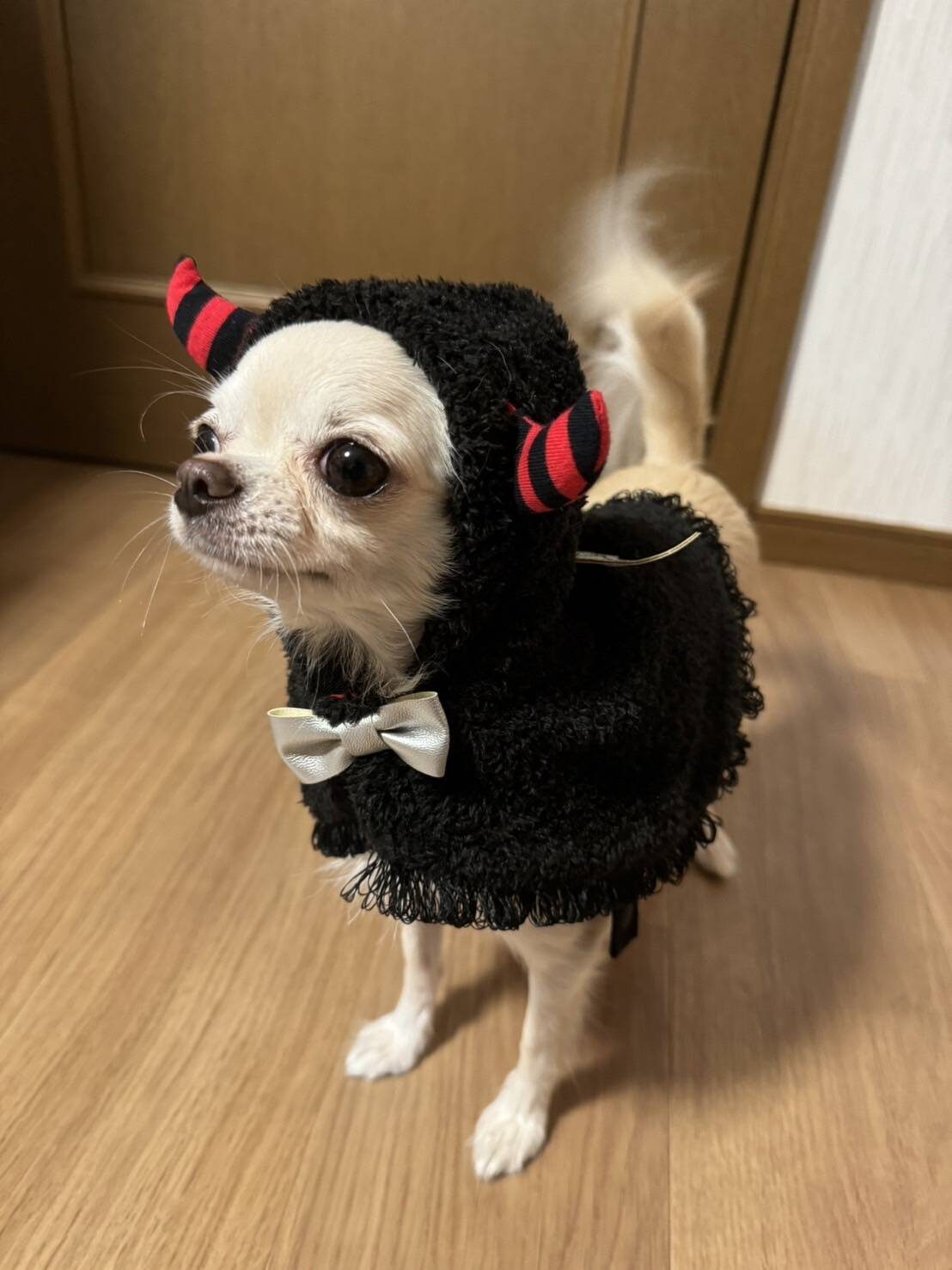 少し早いですがハロウィン風のケープを犬たちに着せちゃいました。