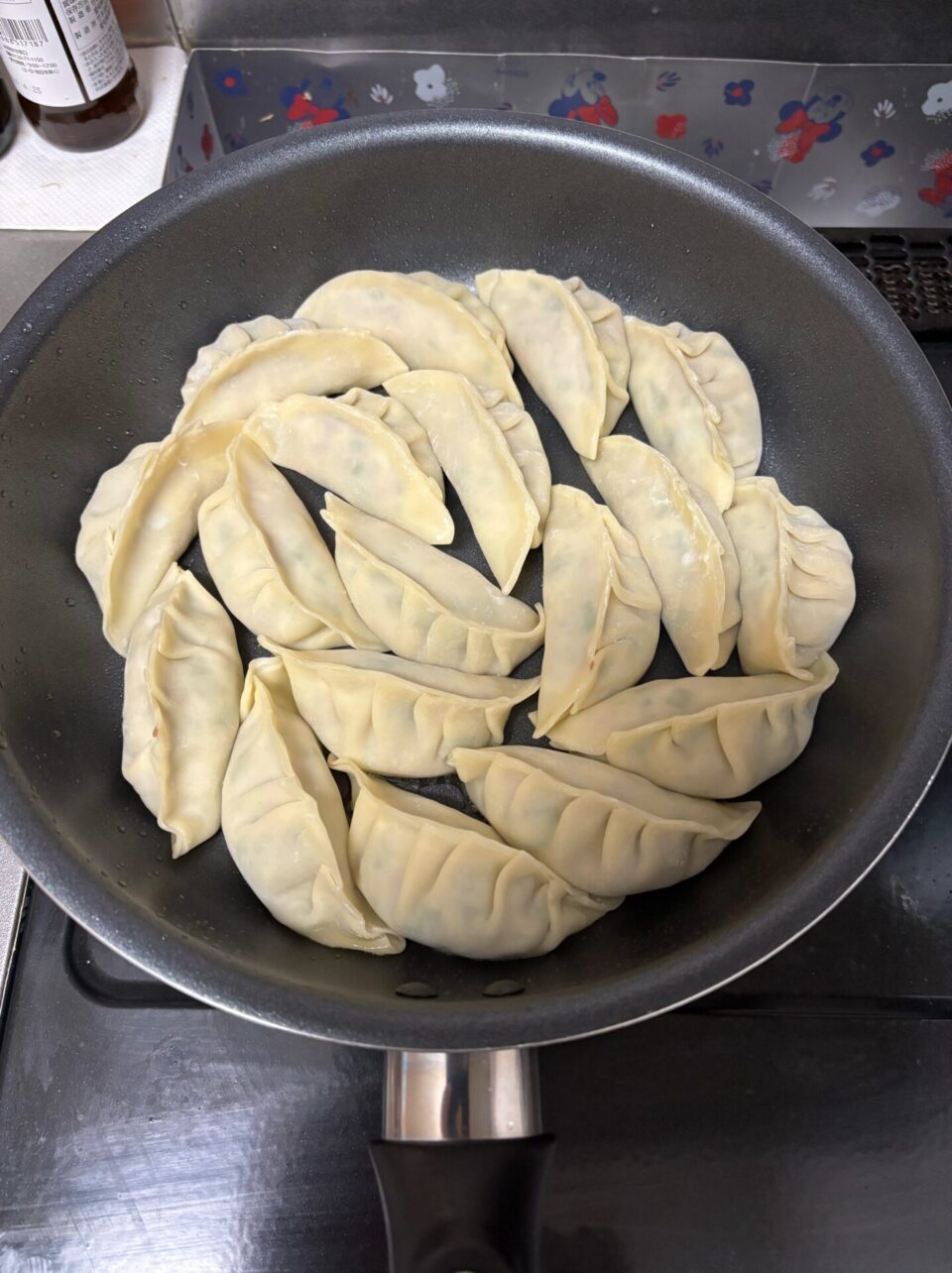 最後にごま油で香り付けと焦げ目をつけて完成(^_-)-☆