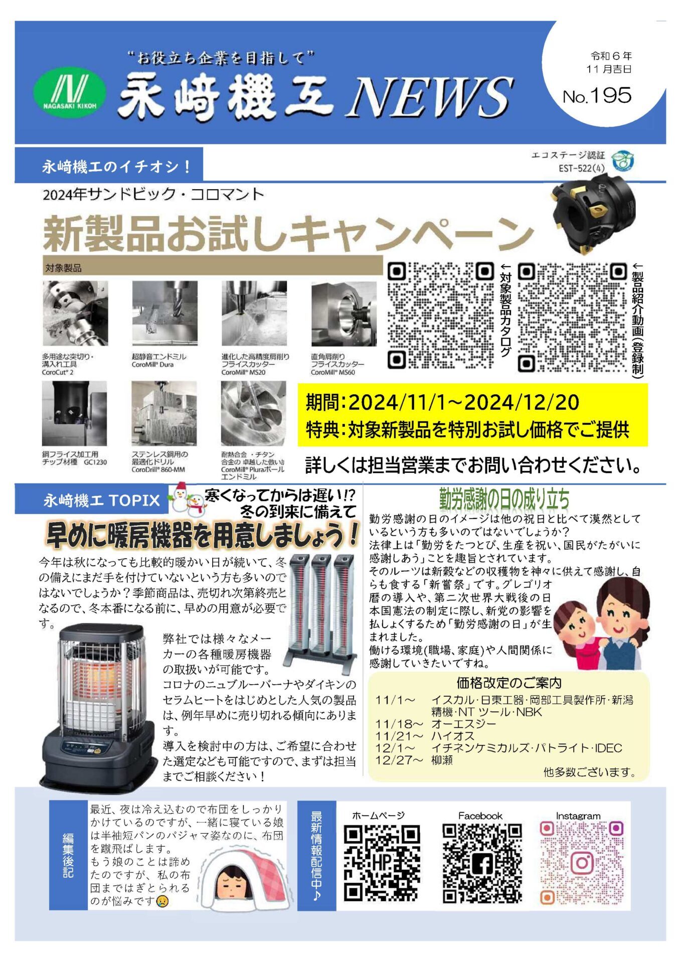 永﨑機工ニュースNo.195が完成いたしました。