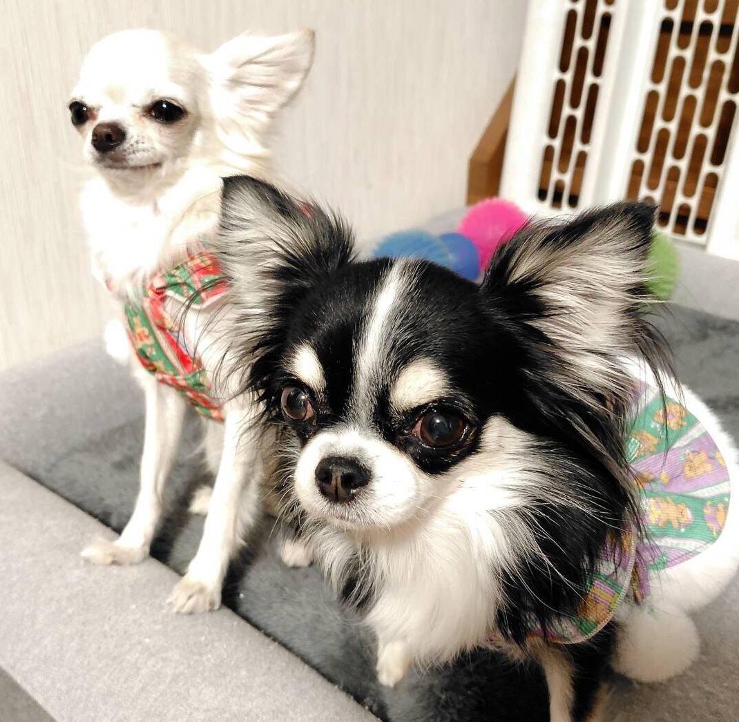 こちらはお洋服を着せたら何故かポーズをきめてくれたチワワたち。