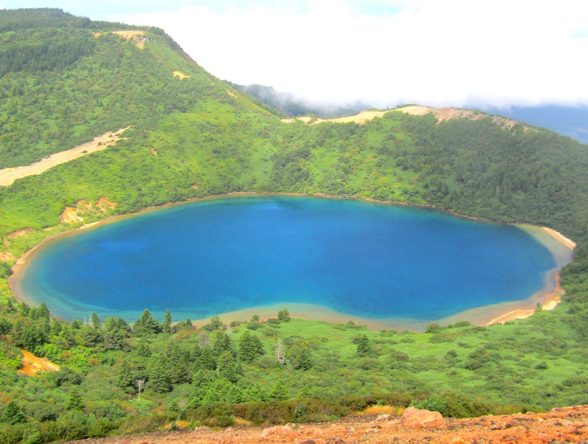 流れ込む川も出ていく川もなく、雪解け水だけを永遠に蓄えてきた神秘のカルデラ湖です