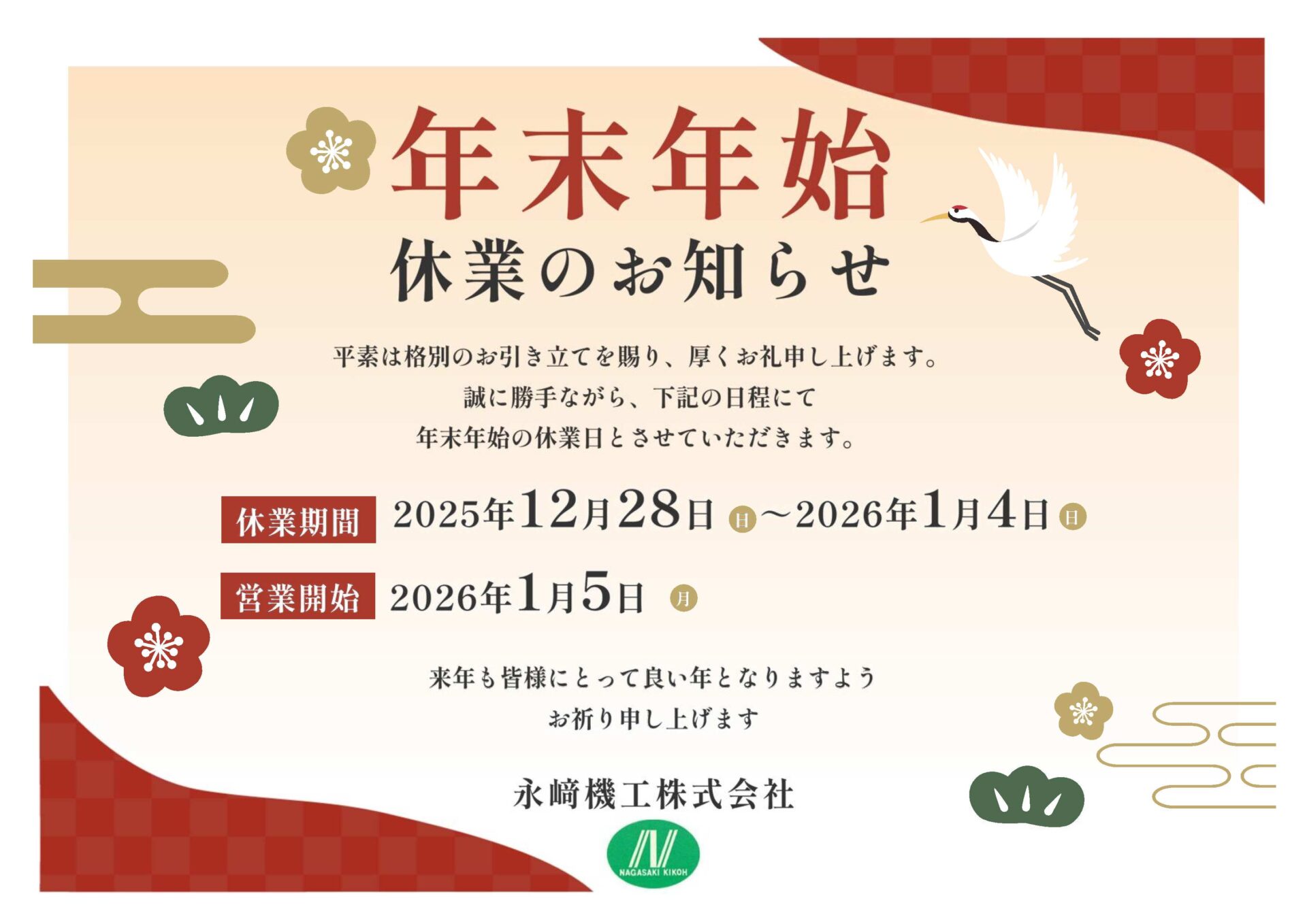 本年も大変お世話になりました。どうぞ良いお年をお迎えください。