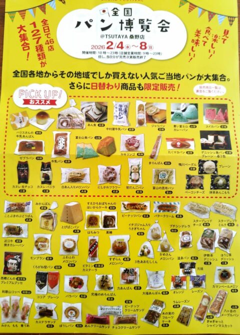 先日、TSUTAYA桑野店で開催していた全国パン博覧会に行ってきました。