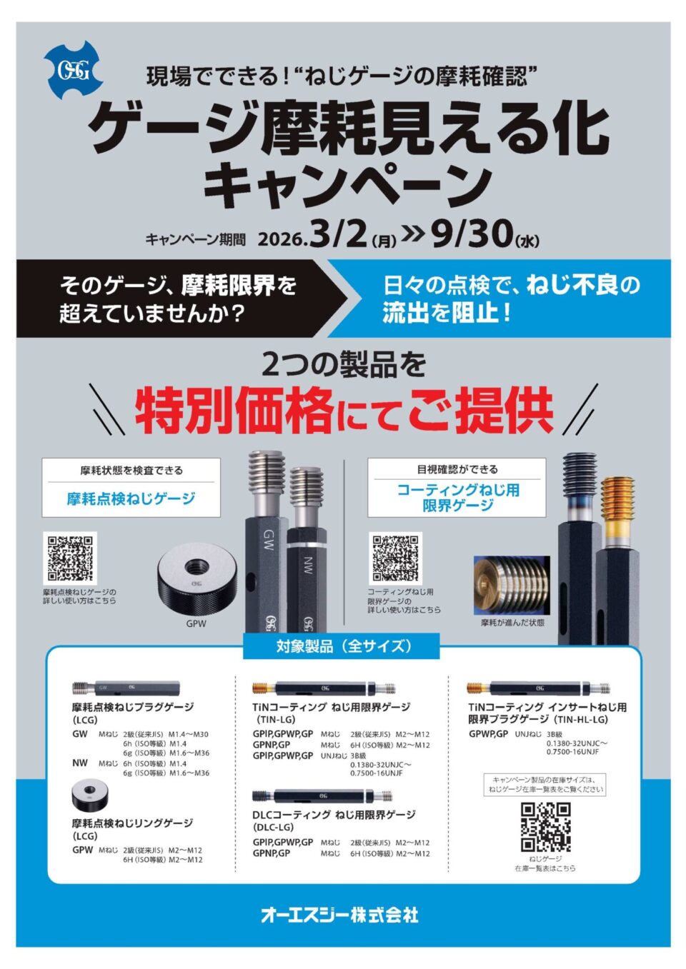 摩耗状態を容易に判定できる「ねじゲージ摩耗見える化キャンペーン」を実施いたします