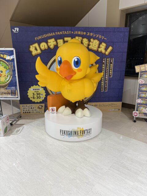 ちなみにこのチョコボは郡山駅新幹線待合にいるので、見たい方は200円で中に入るか、ギリギリ外から眺めることができます(私は蕎麦屋さんの脇から見れました)。全3箇所に設置しているそうですよ。