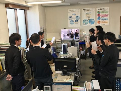 「活力朝礼」で最終日も元気にスタート! 2018年12月28日 本日12/28(金)は年内最終の営業日です。 「活力朝礼」で最終日も元気にスタート! 本社と会津営業所で合同で朝礼ミーティングを行いました。 職場の教養の輪読を行い、年末年始の今日の心がけを共通認識としました。
