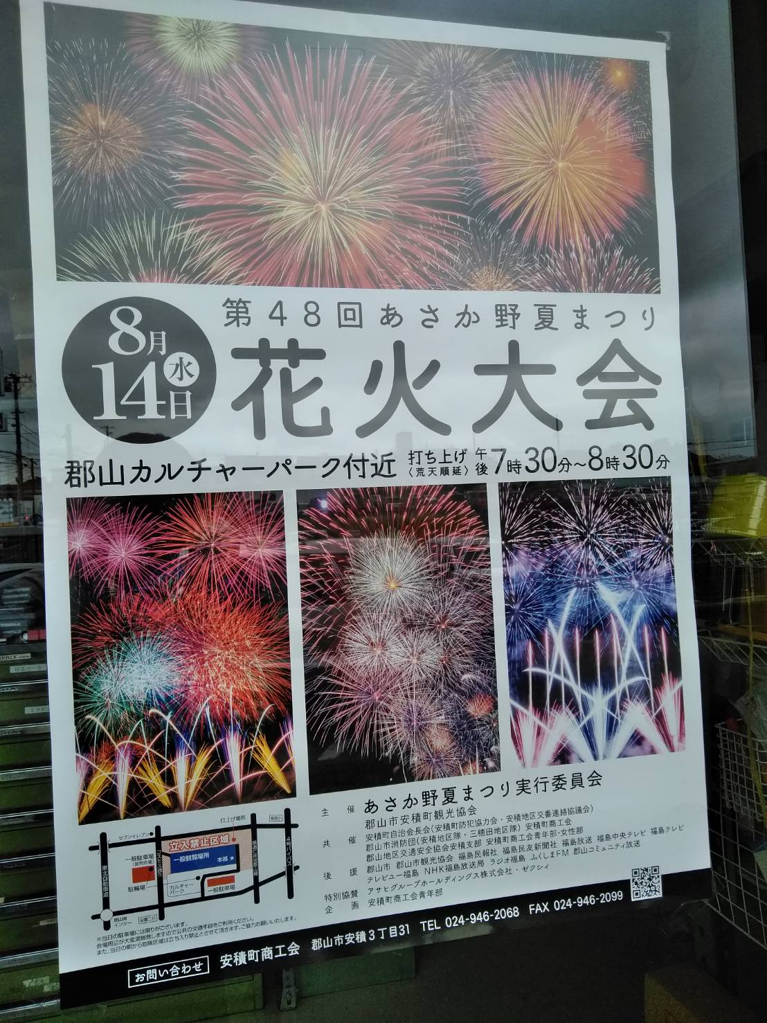 第48回あさか野夏まつり花火大会8/14㊎ 2019年7月8日 こんにちは。 夏はやっぱり花火ですよね~ 地元郡山は、お盆の時期に花火大会があります。 微力ながら、ご協力させていただいております。 お役立ち企業を目指して!