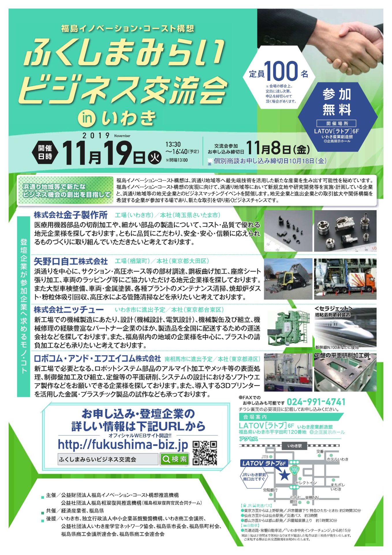 福島イノベーション・コースト構想の実現に向けて、浜通り地方等において新規立地や研究開発等を実施・計画している企業と、浜通り地域等の地元企業とのビジネスマッチングイベントを開催予定です。