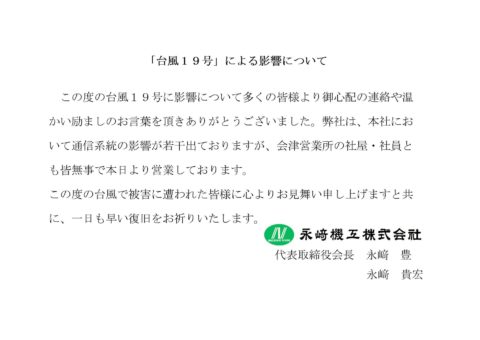 「台風19号」による影響について