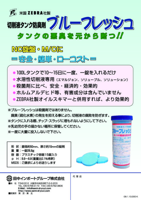 ☆彡この時期におすすめ 切削液タンク防臭剤 ブルーフレッシュ