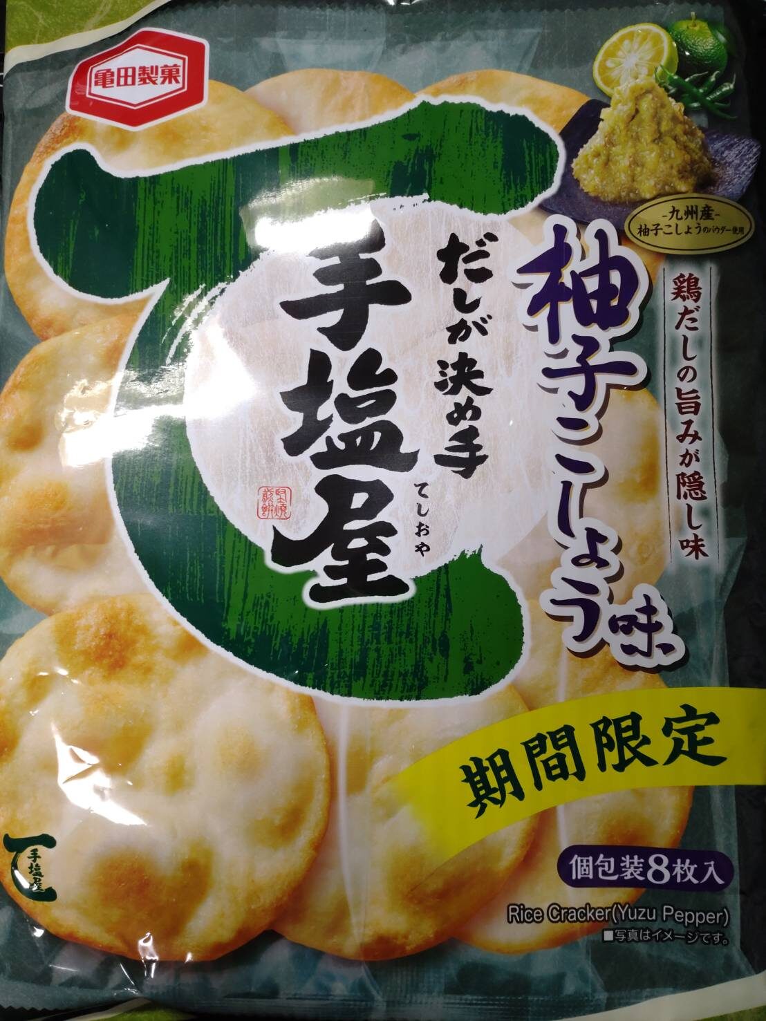 亀田製菓から発売されている「手塩屋」柚子胡椒味です!