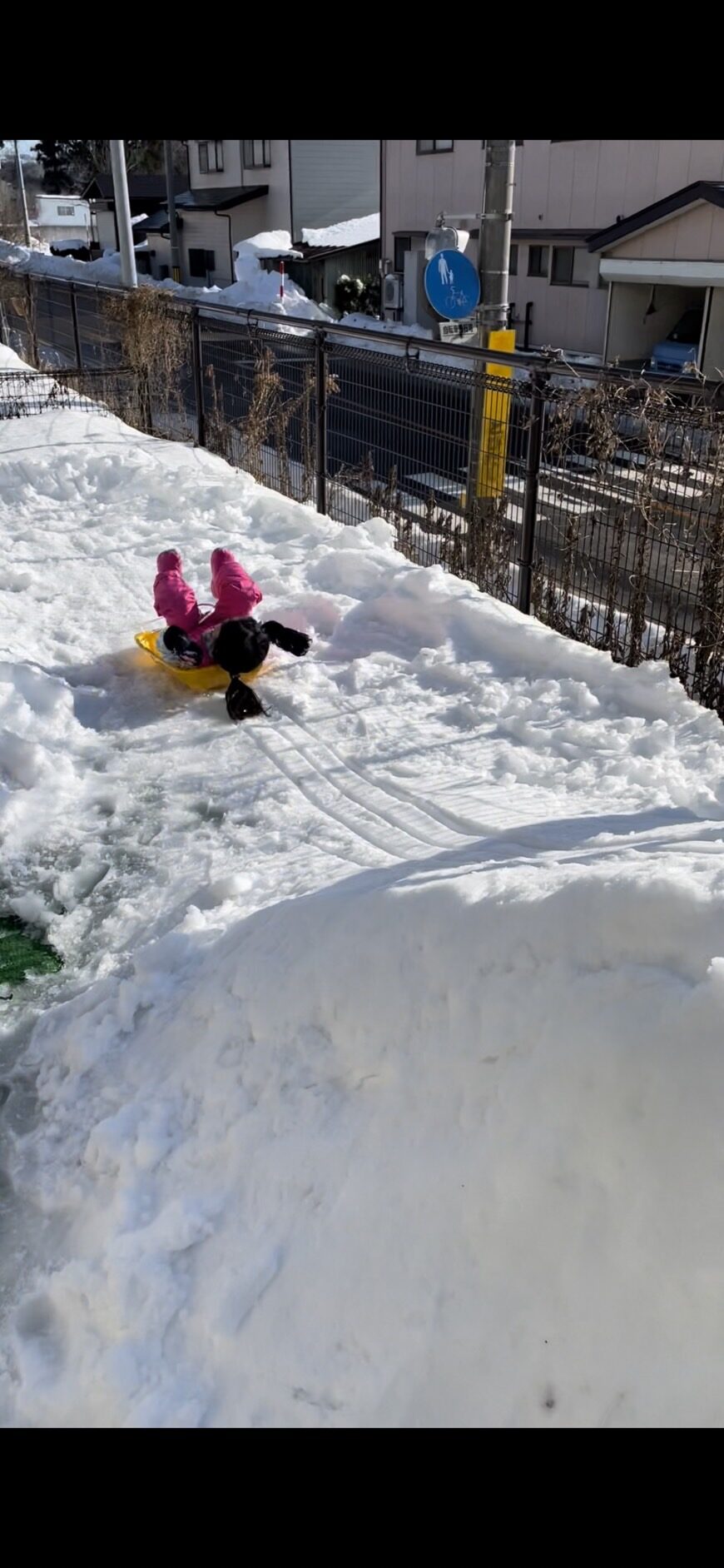 しかし、せっかくの雪をそのままにしておくのももったいないと言う事で、自宅の庭にソリ山を作成しました。