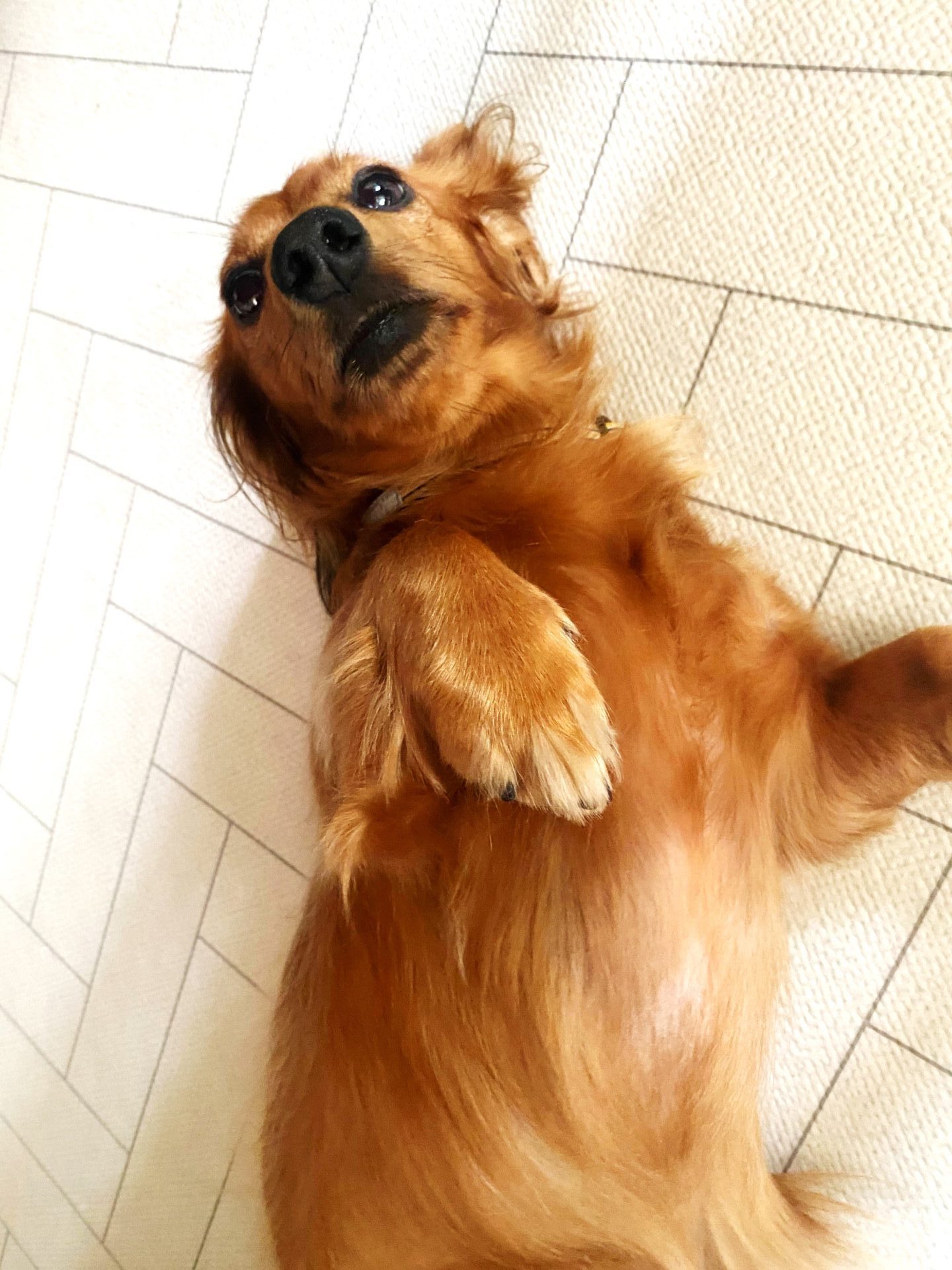ビビりですぐ吠え、意地汚くおやつの時間ばかり覚え、私の娘に嫉妬しておもちゃを齧ってしまいますが、憎めません。