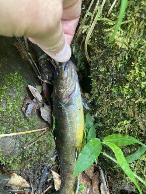 出足が遅かったこともあり先行者に荒らされていてそこから秘密のポイントに移動して何とかイワナ3匹釣ることができました。