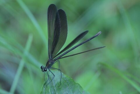 調べてみると、「ハグロトンボ」 別名 神様トンボと言われ縁起がよいとされているようです。