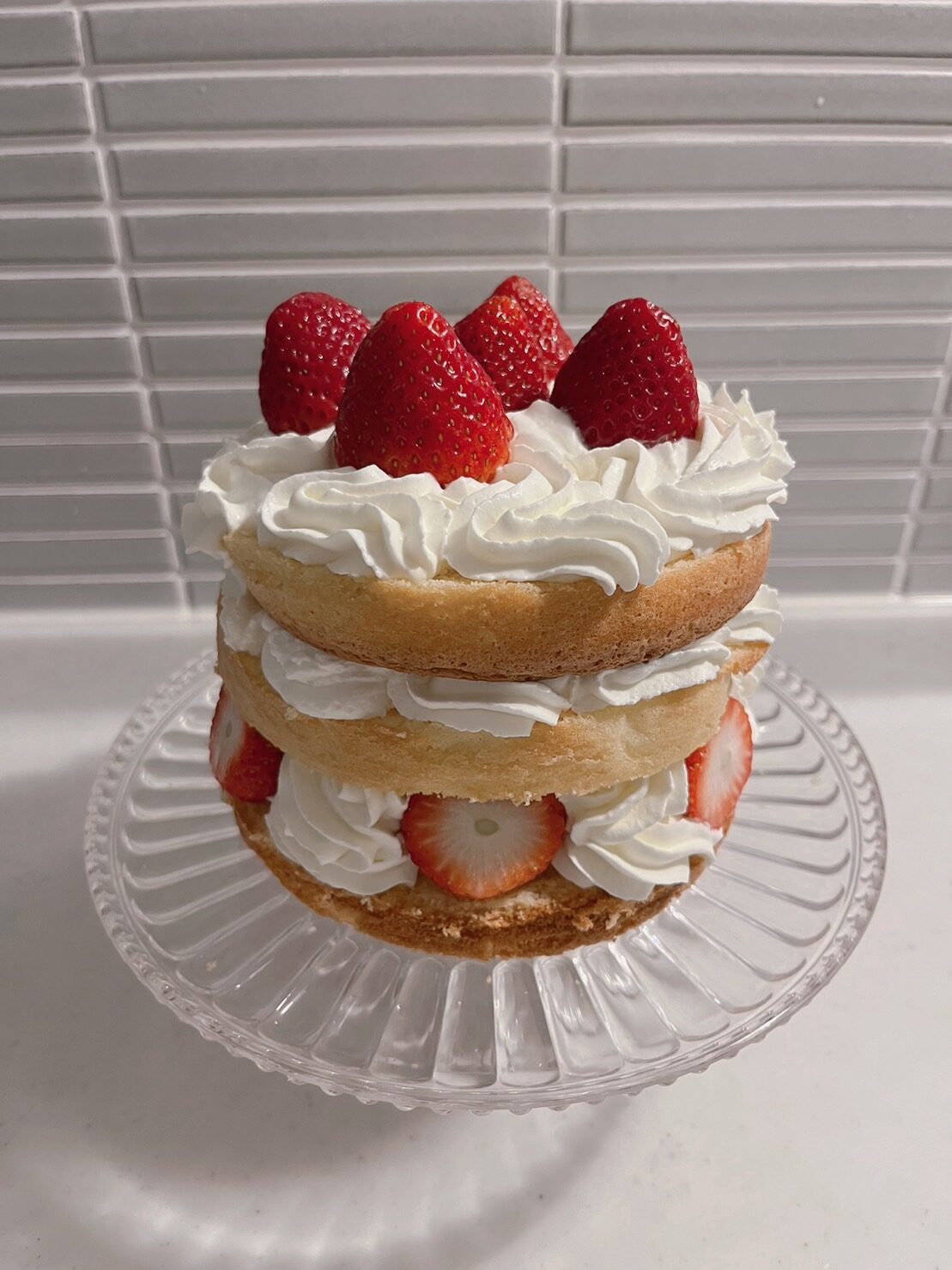 ちょっと硬めのスポンジケーキになってしまいましたが及第点かな?