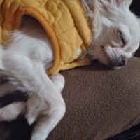 上の写真は私の膝ですやすや眠るチワワちゃんです!