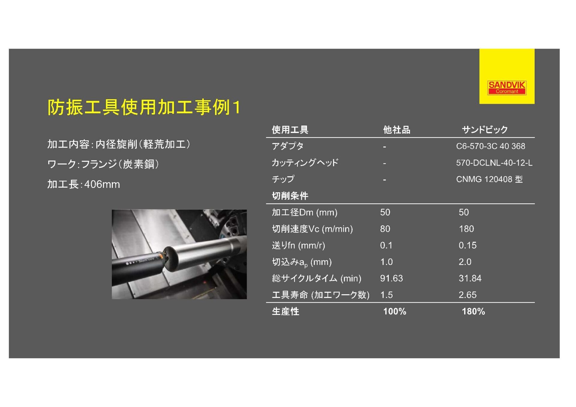サンドビックの防振バーの参考事例です。