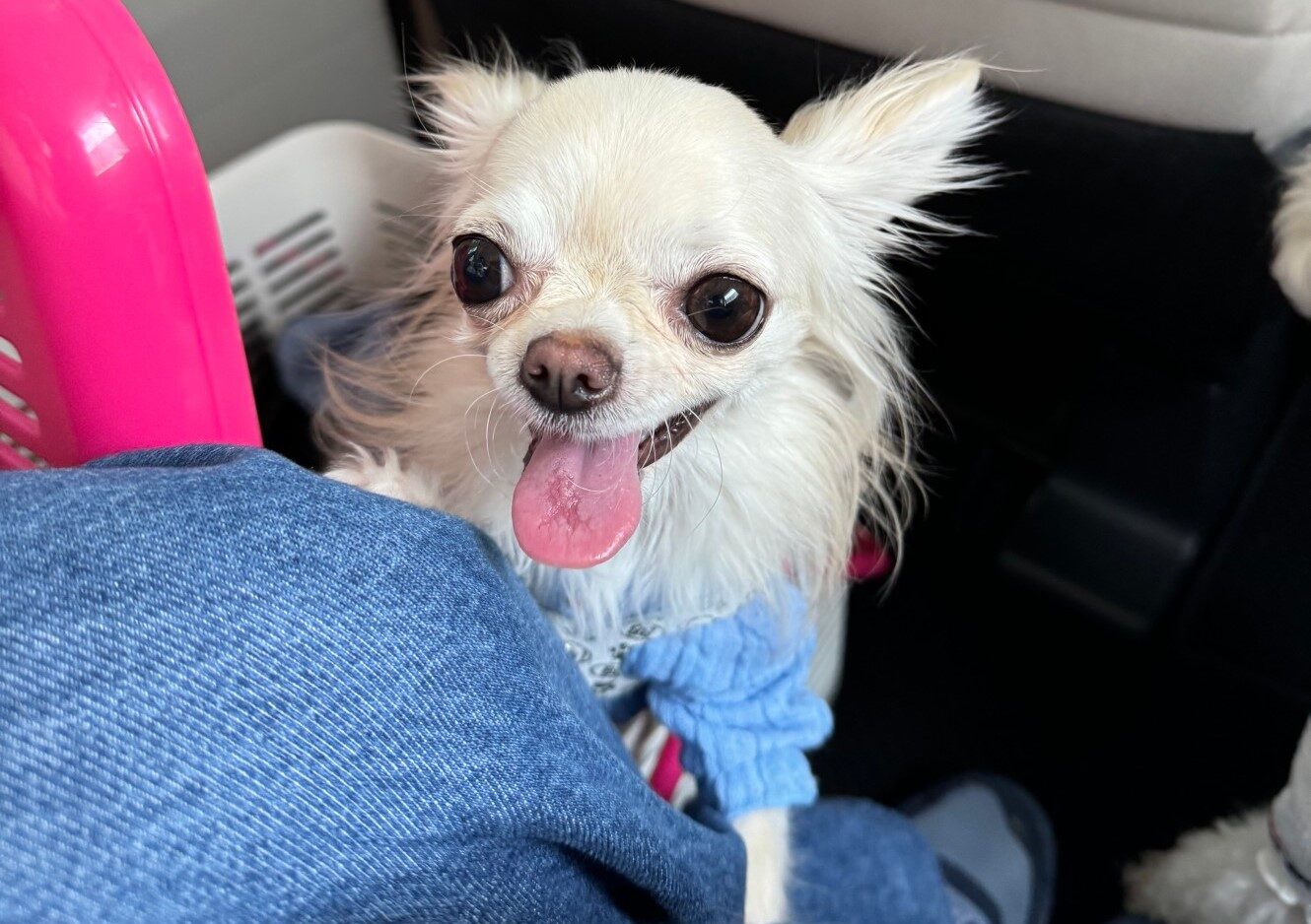 こちらは3連休中にお出かけした時の暑い!と訴えているチワワちゃんの写真です。