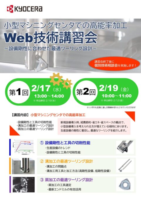 マシニングでの高能率加工~設備剛性に合わせた最適ツーリング設計~WEB技術講習会を開催致します。