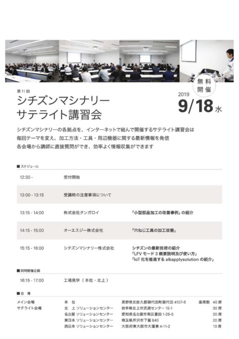 第11回シチズンマシナリーサテライト講習会が北上ソリューションセンターなどを結んで開催予定!