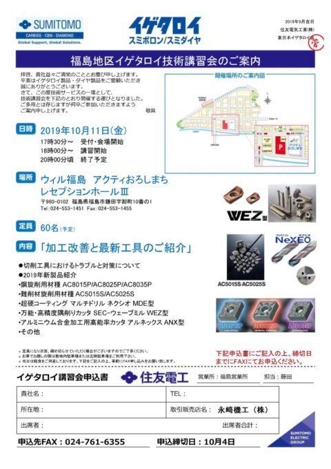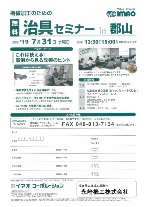 機械加工のための【無料】治具セミナー in 郡山が開催予定です。