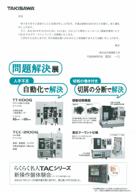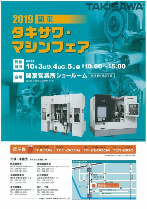 (株)滝澤鉄工所がマシンフェア開催予定!