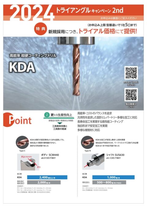 ④高能率超硬コーティングソリッドドリル「KDA」