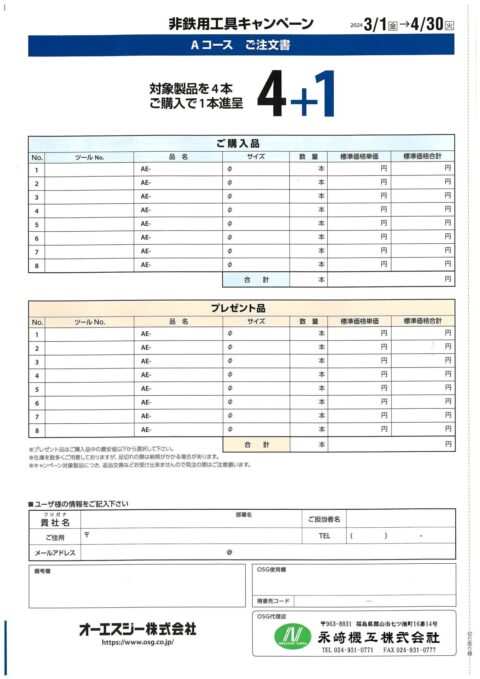 OSGにて、お得な非鉄用工具キャンペーンが開催されますので