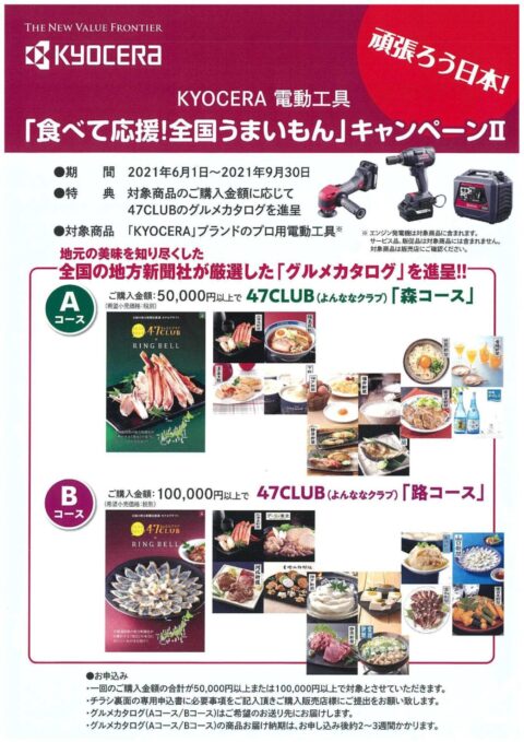 又、現在京セラさんでは「食べて応援!全国うまいもん」キャンペーンも実施中です。