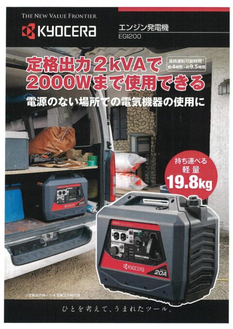 ただいま弊社では京セラさんのエンジン発電機(EGI200)をプッシュしております!