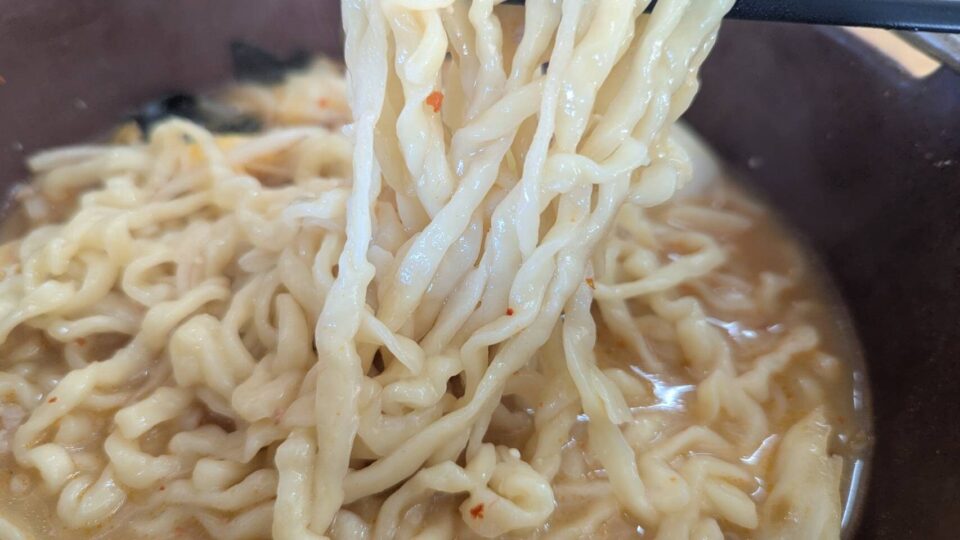 麺は鍋焼きラーメン専用の極太麺。もっちもちで最高です。麺切れで通常麺になることも。。。