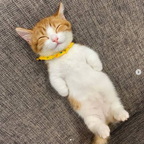 ぬいぐるみではありません。仰向けにねている猫です。