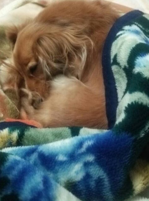 そんな中でも我が家の愛犬は毎日暑さにめげずに毛布にくるまっております!