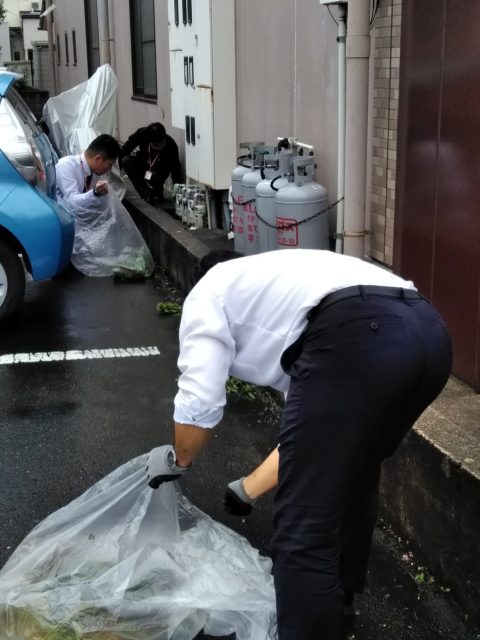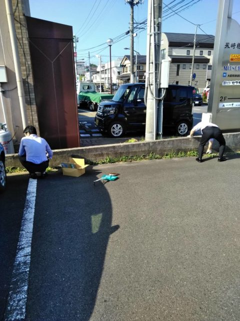 ゴミ拾いや玄関や事務所内もお掃除いたしました。