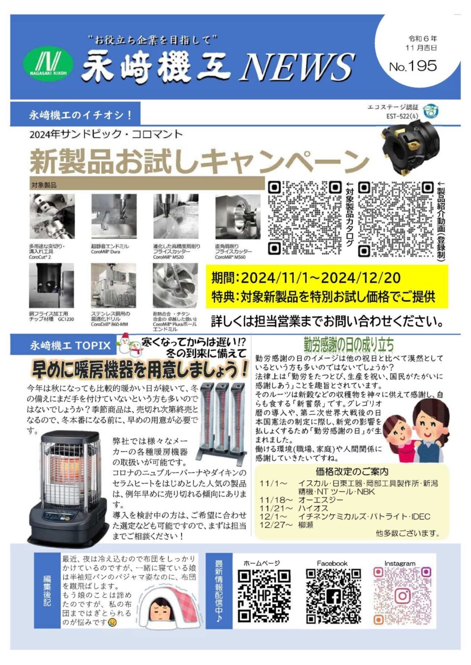 早く読みたい! という方はこちらから→永﨑機工ニュースNo.202(PDF)