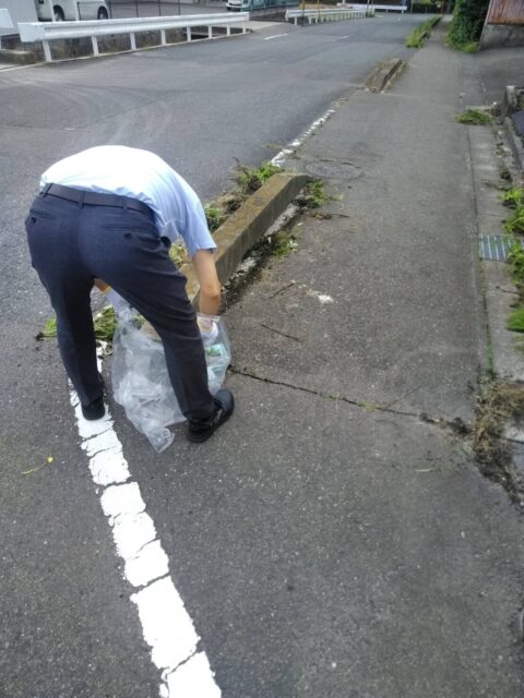 男性陣は社員駐車場、女性陣は屋内に分かれて清掃を行い25分程の清掃でしたが、社員総出で行うとあっという間に綺麗になります。