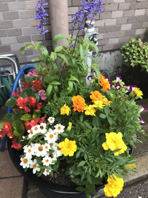 本社の入り口には、かわいらしい花たちがお出迎えです。