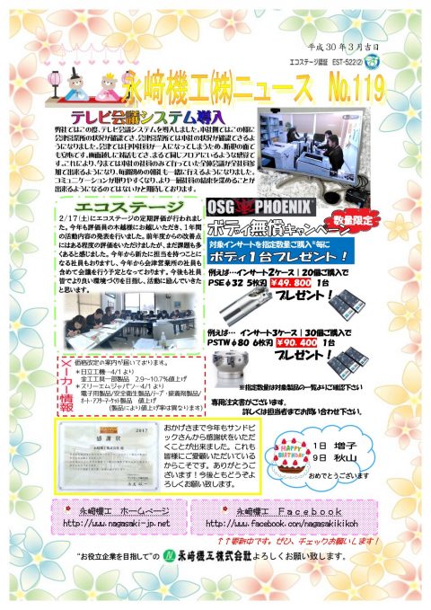 永﨑機工ニュース№119完成しました。