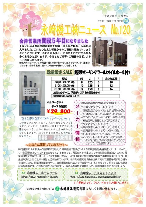 永﨑機工㈱ニュース№120 完成しました。
