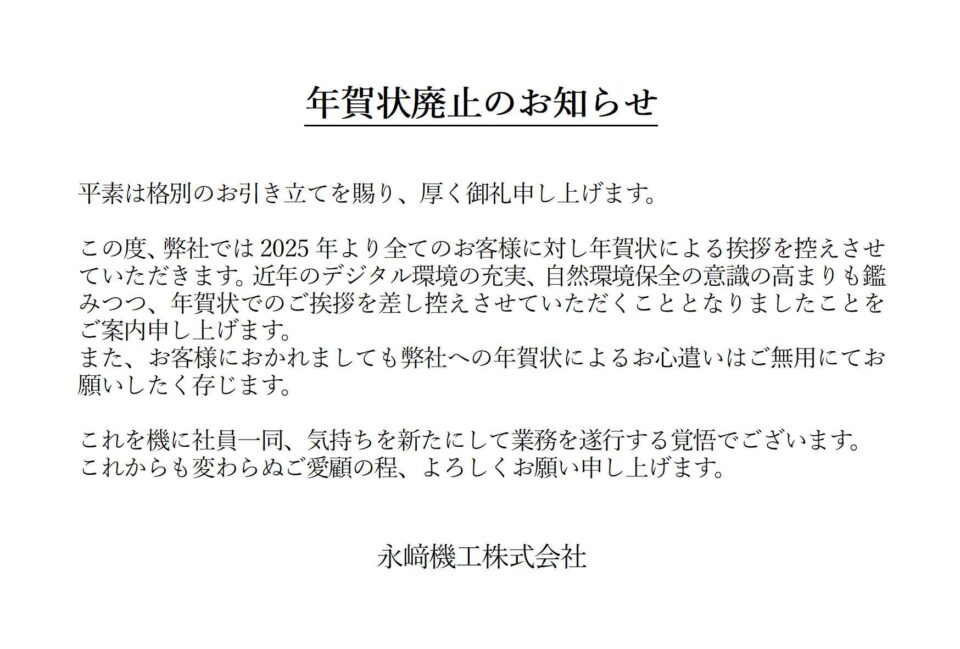 改めて年賀状廃止についてお知らせいたします。