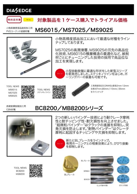 ③小物高精度部品旋削加工用PVDコーテッド超硬材種MS6015/MS/7025/MS9025