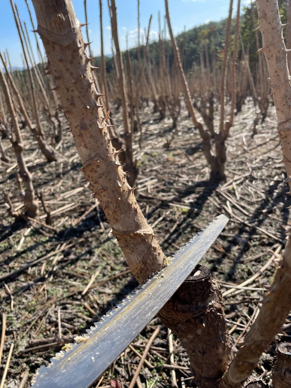 畑で育てたタラの芽に木を雪が降る前に一本一本、手作業で刈り取り