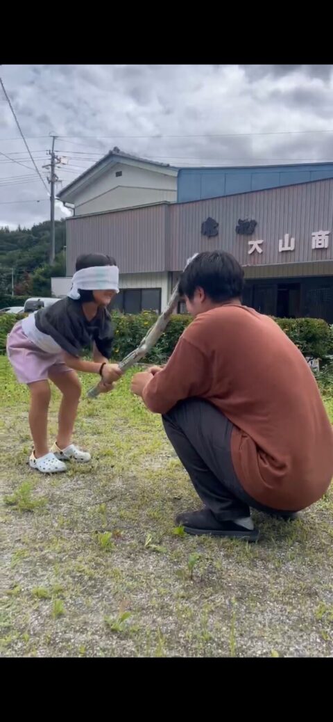 沢遊びにスイカ割り(娘には頭を割られてしまいました笑)