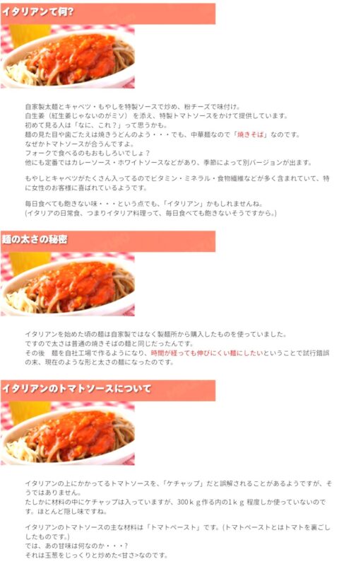 この「ナポリタン」実はパスタではありません。 新潟県民(中越・下越)のソウルフード、「ナポリタン」は麺が中華太麺 つまり焼きそばの麺なんです。 作る過程もほぼ焼きそばで、麺・キャベツ・モヤシをソースで炒めたところにトマトソースや粉チーズをかけた、和のベースに洋のトッピングをミックスした不思議な見た目の料理です。 お箸ではなくフォークで食します。