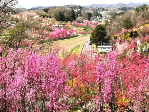 この花やしき公園はハナモモやレンギョウが集落一帯に植えられており、時期になると7000本以上の木々が一斉に花を咲かせ、まるで桃源郷と呼ぶに相応しい景色となります。