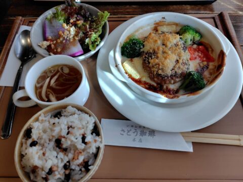 私は月替わりメニューの味噌クリームハンバーグをケーキセットで注文しました。