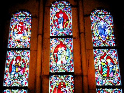 金属の枠に破片を嵌めたのがステンドグラスと思ってましたが、絵画も含めてガラスに着色されたものは全てステンドグラスという括りになるんですね。