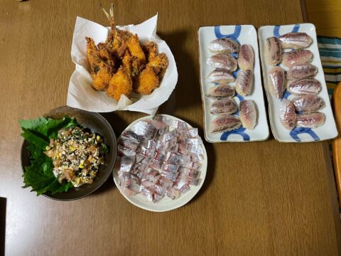 今回は20㎝オーバーが20匹程釣れたので、鯵三昧な夕食でした!